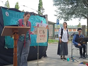- Da dx Federica Tammarazio, l’attrice Elisa Occhini e il musicista Pierpaolo Berta.