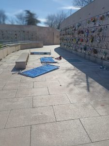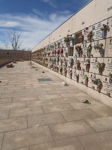 Al Cimitero Parco è temporaneamente chiuso l’accesso pedonale in via Ingria 40 per la rimozione dei rami che il forte vento ha fatto cadere. Tutte le scale sono state fatte appoggiare sul pavimento per evitare che si ribaltino. Mazzi di fiori e foglie sparsi ovunque. Il personale dei cimiteri sta lavorando senza tregua per ripristinare l’ordine ma finché le folate di vento non si riducono, è inutile. Nelle foto fiori a terra e transenne.